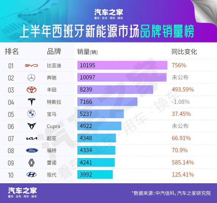 欧洲市场在汽车行业里被视作竞争最为激烈、挑战最大的核心阵地,其市场教育成熟度高,各大传统汽车品牌在此根深蒂固、势力庞大。但在今年上半年,比亚迪仍在欧洲市场频获突破,在英法德意西五大欧洲头部市场中表现亮眼,其中比亚迪在意大利、西班牙均取得了新能源销量第一。比亚迪在西班牙的上半年销量突破万辆,增速高达756%。在意大利,比亚迪上半年销量达10828台,同比增长2573.58%,宋PLUSDM-i等车型持续热销,深受消费者喜爱。