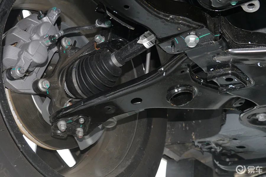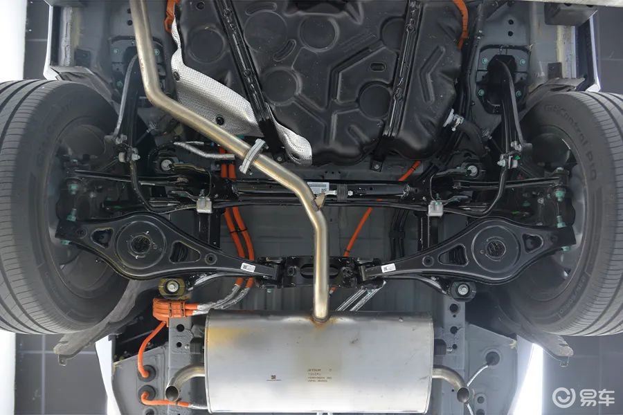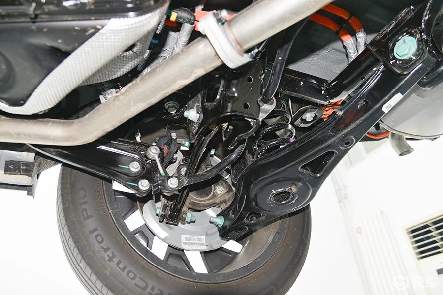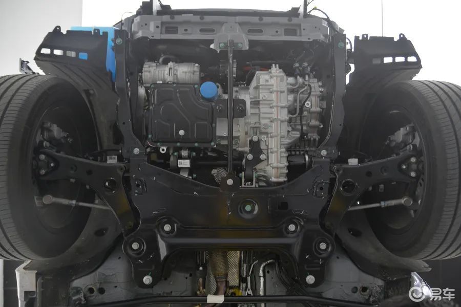 后副车架是全框式结构,这是目前主流的设计方式,并且预留的空间比较大,所以后期可能会有四驱车型上市。