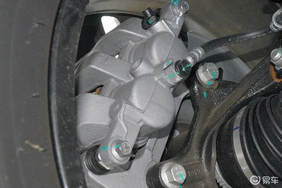 前刹车使用通风盘,双活塞浮动式卡钳,同级别中属于高规格。