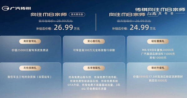 广汽传祺向往M8宗师版上市 售价26.99-28.99万