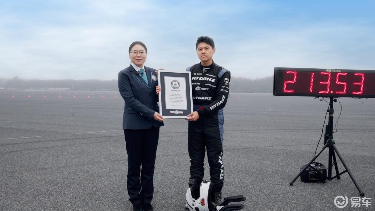现场成绩为:213.53km/h,后经吉尼斯纪录核实最终成绩为:213.523km/h