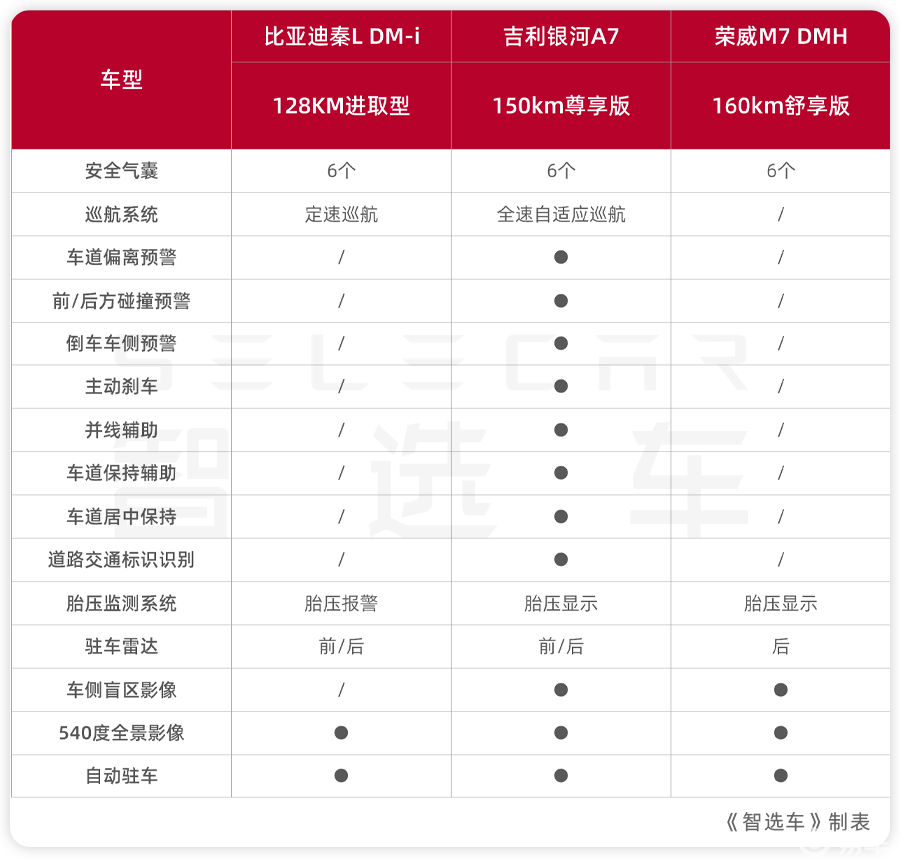 秦L DM-i、银河A7、荣威M7 DMH应该怎么选?