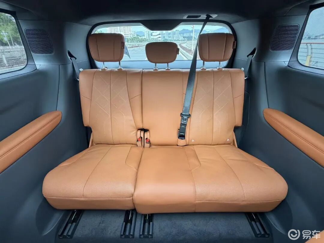 坐进车内,空间的开扬感比数据来得更直观。大多数MPV,往往难以兼顾第三排的体验,要么是上下第三排不方便,要么是坐小板凳,亦或是挤占二排腿部空间,但这台车,即便是三排满座,每一排乘客都能获得不错的膝部空间,以编辑170cm的身高为例,前排正常驾驶坐姿,后两排全部可以获得2-3拳的腿部空间,确实可以做到了“全员平等”。