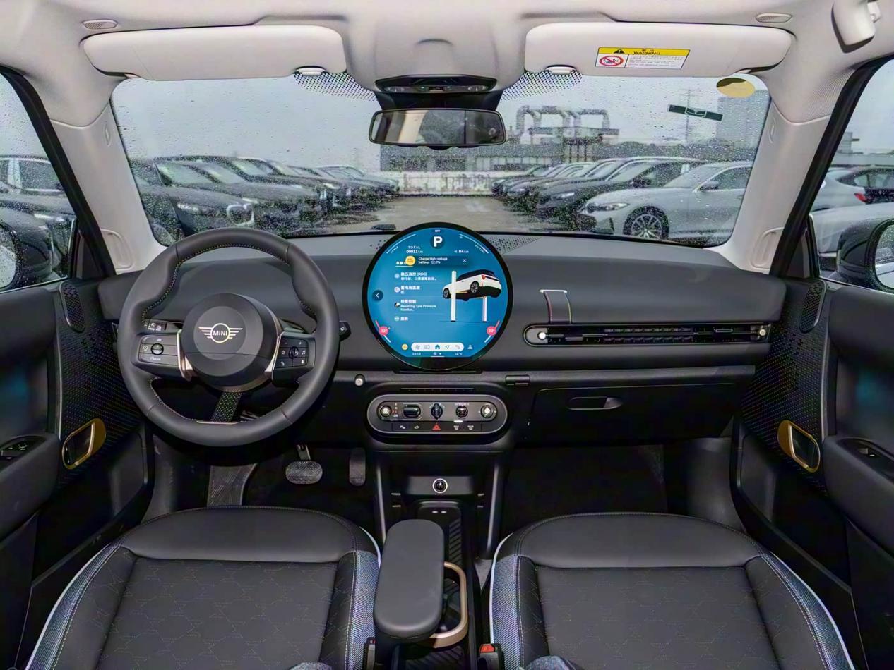 内饰部分,该车配备无边框圆形OLED显示屏,内置有全新第9代MINI操作系统,车内生命体征检测、UWB数字钥匙、不可开启全景天窗等。座椅采用2+2式4座布局。