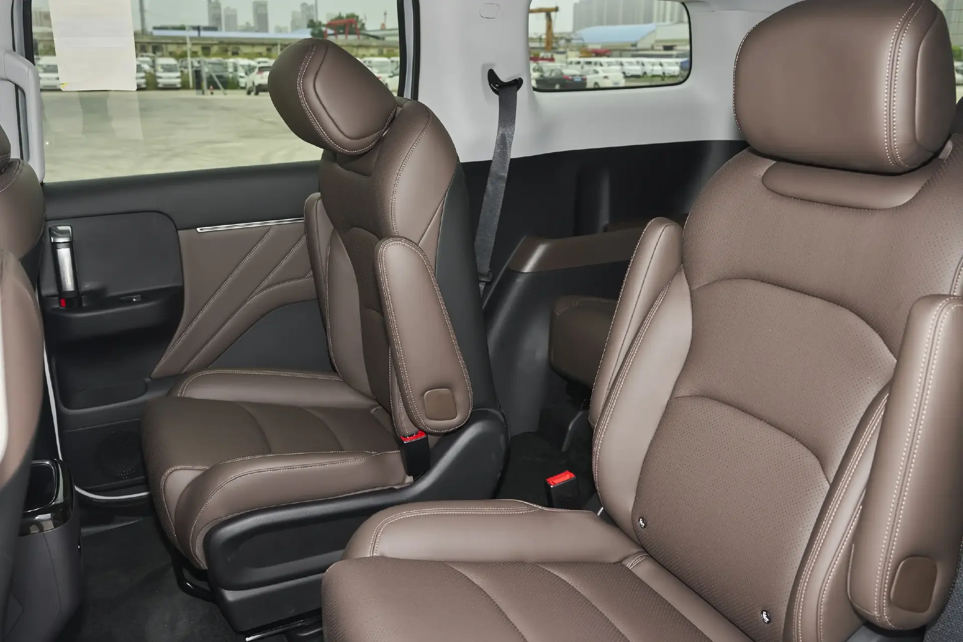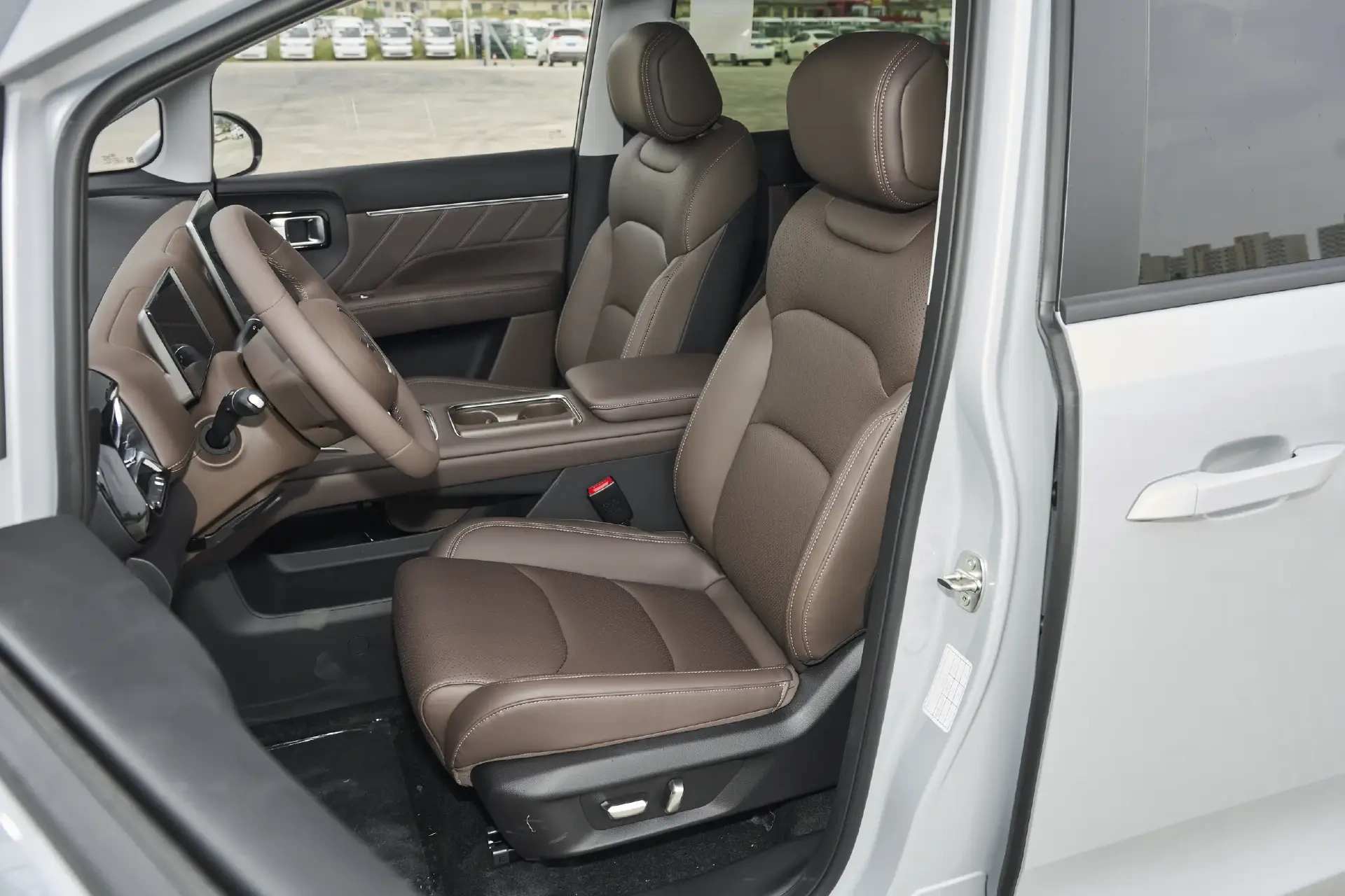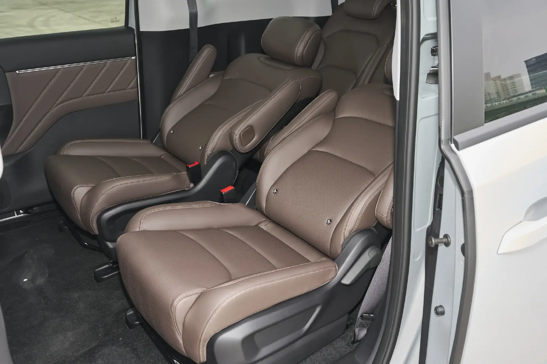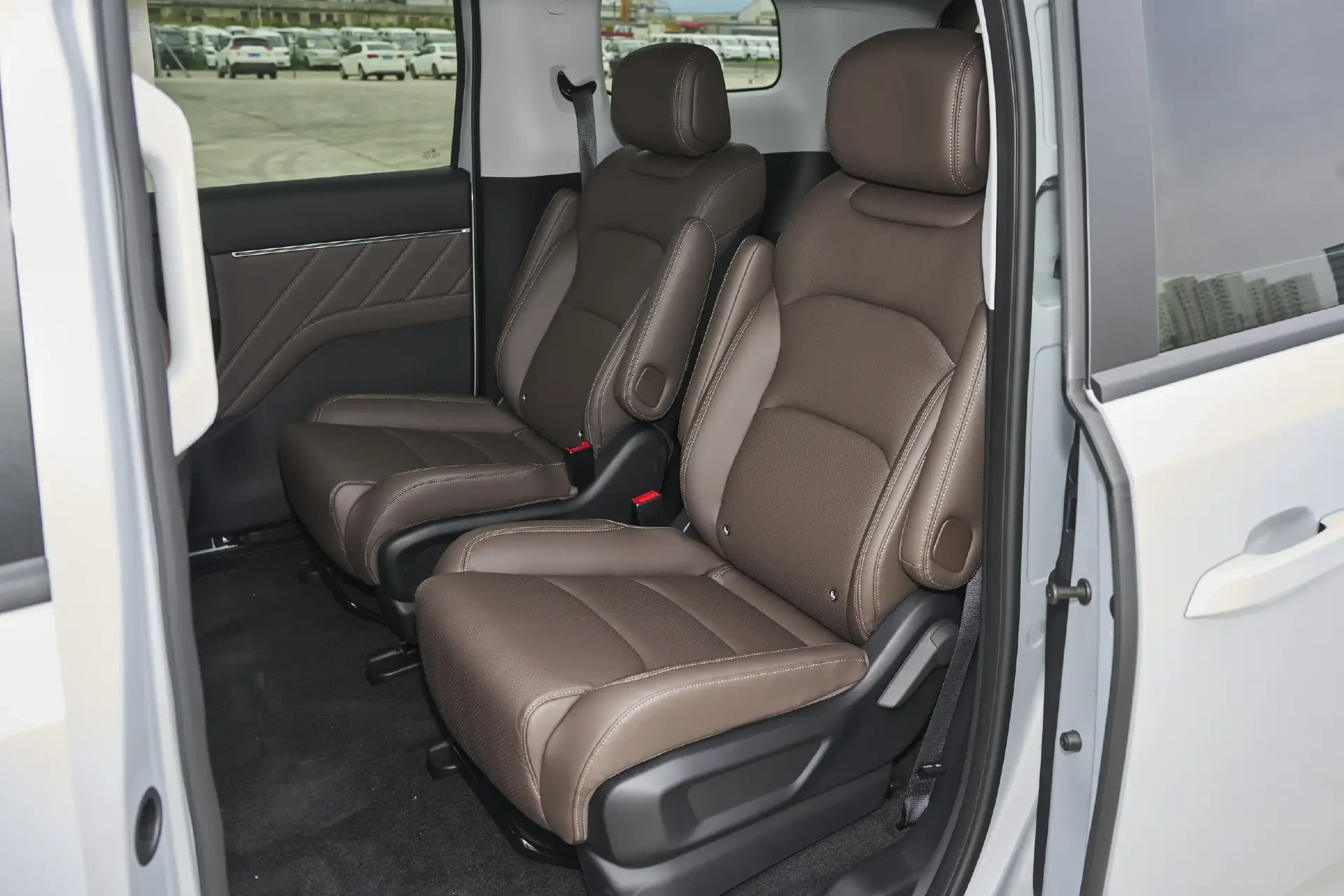 能看到的是,这台想要在家用市场成为主流的MPV,在装饰方面确实有面积可观的软包与填充,加上6扬声器、前排化妆灯、多温区独立空调以及双侧手动或右侧电动滑门等配置与功能,应该说这个级别该有的东西它都没落下。只是现在缺少辅助驾驶、放在主流市场还是有些差强人意,定速巡航与540度全景影像放在MPV里,用“够用”二字就足以总结完毕了。