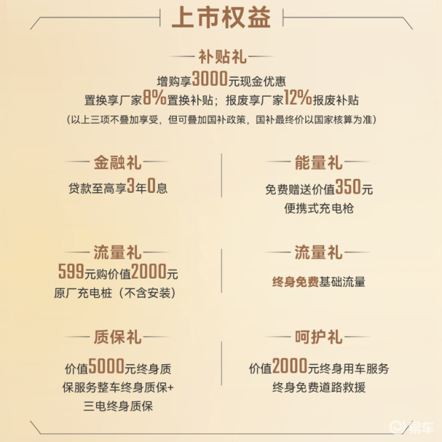 内饰则采用琥珀流光配色,搭配日色鎏金饰条点缀,还有高定刺绣头枕,整体氛围温暖雅致。
