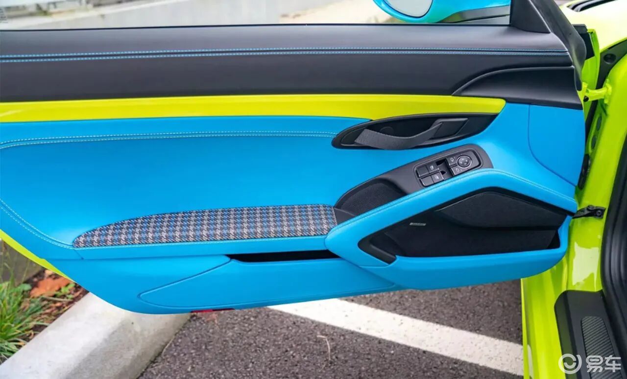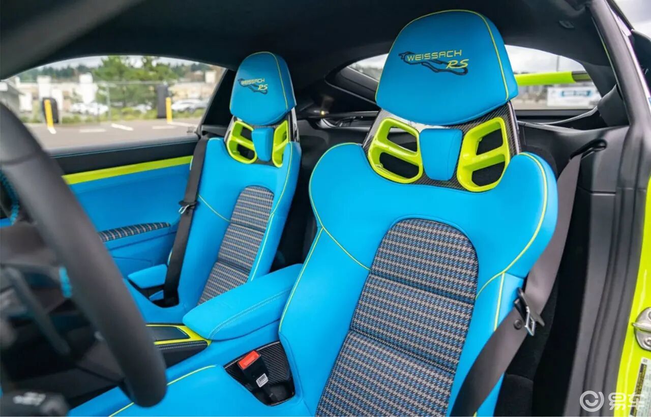 但当一台GT4 RS落入保时捷Sonderwunsch(特殊心愿)定制部门的手中,一切都变得颠覆——车身被涂成刺眼的桦木绿,轮毂、后视镜、尾翼端板甚至车尾字母都被刷上亮蓝色,内饰更是将绿蓝撞色进行到底,车主为此额外支付超5万美元选装费,却让这台赛道猛兽,活脱脱变成了“玩具车既视感”的网红。