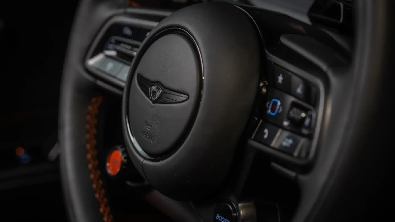 这种差异化还体现在声浪体验上。与现代 Ioniq 5 N 的四缸发动机模拟声浪不同,GV60 Magma 的模拟声浪经过专属调校,深踩油门时,初始的电子嗡鸣会在中转速区间逐渐转化为 V6 发动机般的轰鸣声,直至达到 9000 转的虚拟转速,而拨动换挡拨片完成 8 速虚拟换挡时,声浪会随换挡动作产生顿挫感,更贴合传统性能车的操控体验。约翰逊透露,这套合成声浪历经数月调校,与车辆的动力输出、换挡逻辑深度匹配,只为让驾驶者获得更沉浸的操控感受。