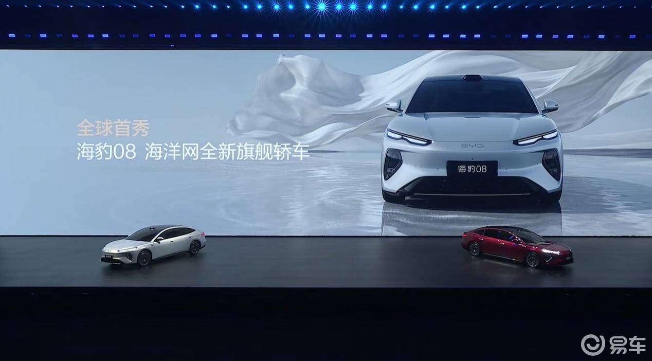 海豹08首秀,新车是海洋网的全新旗舰轿车,除搭载第二代刀片电池之外,新车采用海洋美学2.0设计,长宽高分别为5150mm/1999mm/1505mm,轴距3030mm。新车还具备后轮转向,带激光雷达的辅助驾驶,云辇A等。