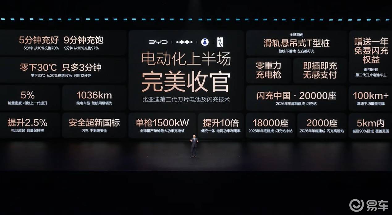 而在配套方面,比亚迪宣布要在2026年底前建成2万座闪充站,其中高速服务区要覆盖2000座。