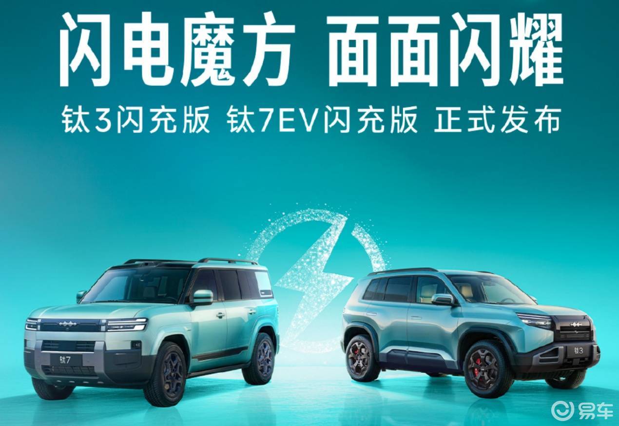 方程豹:钛3闪充版和钛7 EV闪充版正式发布,新车将在3月13日正式上市,两款新车纯电续航分别为620km和755km。