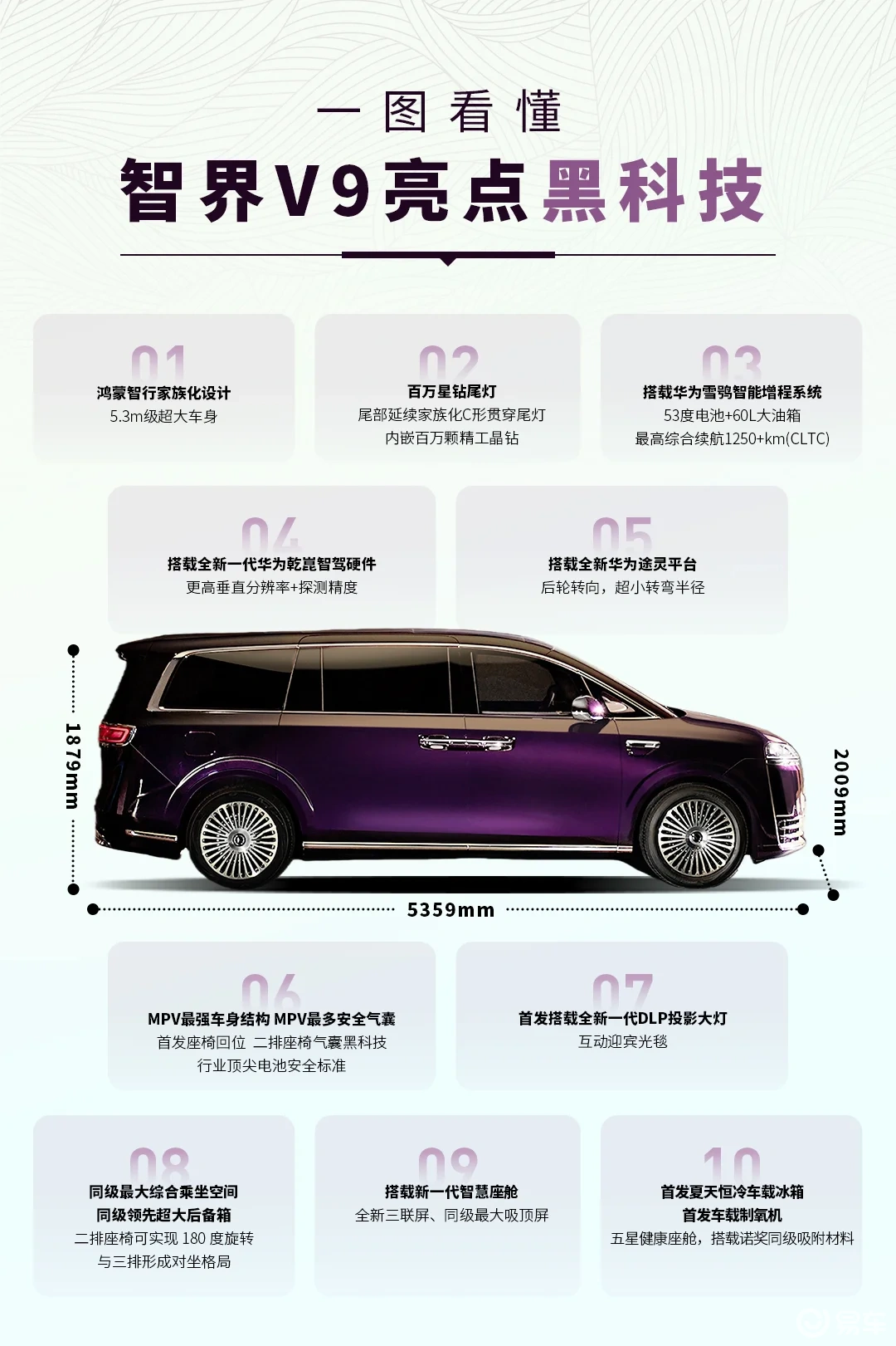 智界V9的核心竞争力,更在于鸿蒙生态加持的硬核科技,这也是“MPV科技车皇”定位的支撑。鸿蒙智行凭借问界M9等车型的成功,积累了深厚技术与用户口碑,为智界V9奠定基础。智界V9承载“科技定义豪华”使命,延续“安全是最大豪华”理念,试图打破MPV科技体验天花板。
