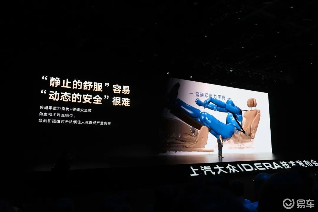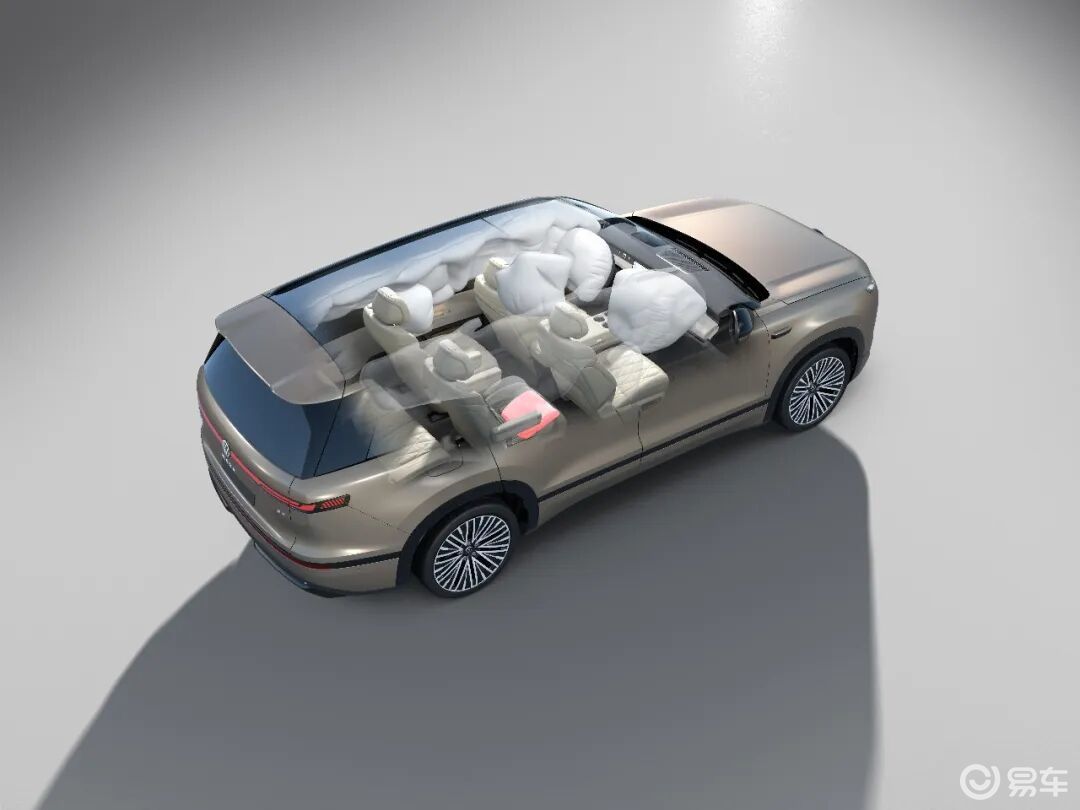 三把零重力座椅,其中二排副驾侧座椅打破行业局限,支持动态零重力座椅功能。实现原理是在坐垫上集成了12L大容量防下潜气囊,配合集成式安全带、座椅骨架及车身连接点全面强化等多重防护,解决了零重力座椅在动态行驶中因碰撞瞬间“臀部向前滑移”而导致的安全问题。大众为此还在技术日上午开放了专项实车碰撞测试,也系行业首次。