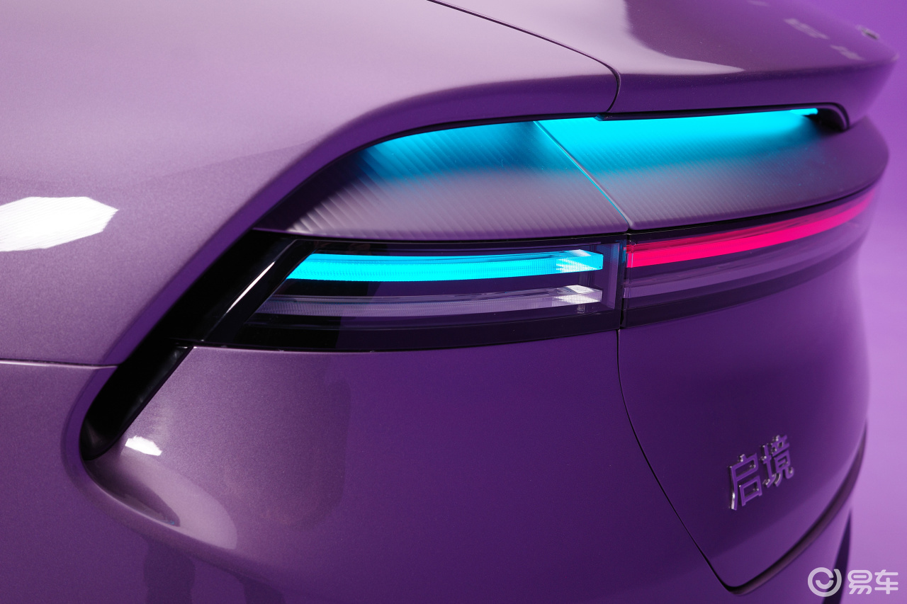 车尾的启境之翼是启境GT7的一个创新点,这也是现在市面上没有的设计,采用了一个贯穿式尾灯设计,而两侧采用分段式漫反射式技术,在尾灯点亮时,通过两侧漫反射的灯光可以让它两端如同展翼一样,所以它叫“启境之翼”。之前特斯拉Model Y或者极氪007都是贯穿式漫反射。