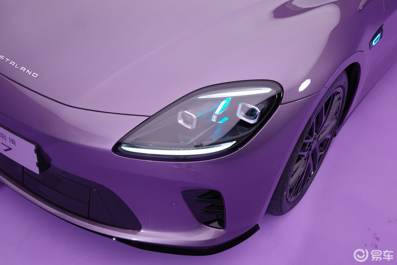 这次启境GT7在外观设计上花了很多心思的地方是它的灯光系统。前大灯设计被称为“灵眸大灯”,在圆润的水滴造型基础上,大灯组里面是双横向日行灯设计,将车身前脸的特征线连接打通,之后也会成为家族符号。而大灯里面是飞机造型的小蓝灯,智驾启用时会变成蓝色,如同瞳孔一般。
