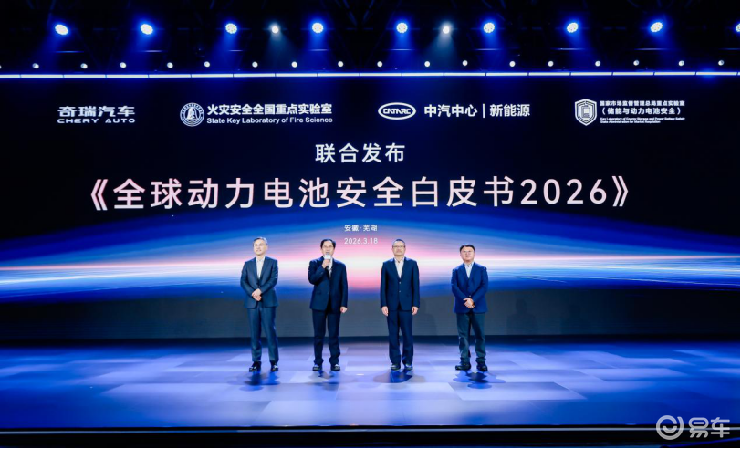 安全是奇瑞融入血液的DNA。奇瑞携手火灾安全全国重点实验室、中汽中心、国家市场监督管理总局重点实验室等,联合发布《全球动力电池安全白皮书2026》,以技术积累和实践经验为全球动力电池安全发展贡献力量。