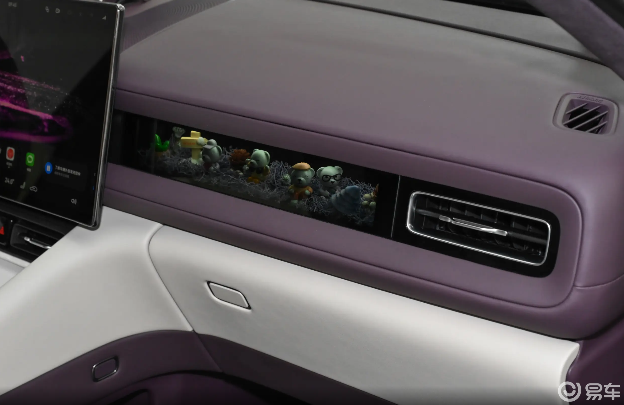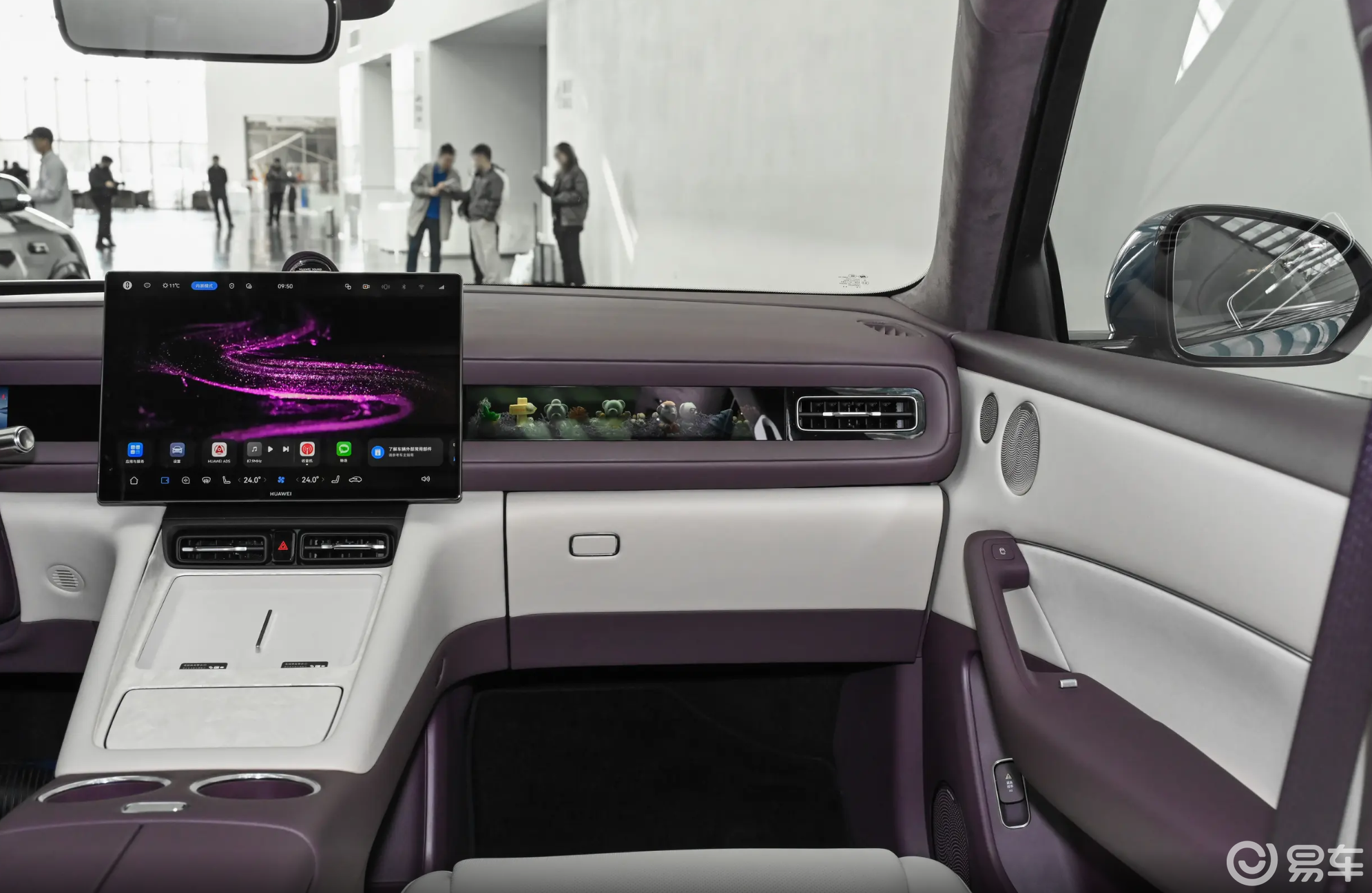 而这款车的内饰也做出了一些小的创新,能够感觉到设计师团队是挖空了心思,就比如台面布局这个课题,现在主流的方式就是简单的中控悬浮车机大屏幕,顶多是右侧再加上一个副驾驶的娱乐屏幕,但是问界M6直接搞出了新花样,副驾驶前方并非屏幕,而是挖了一个橱窗空间,这样可以加装一些类似小手办的装饰品。
