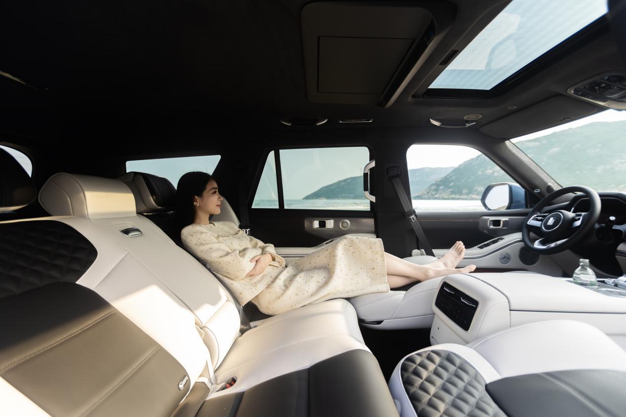 5.4L智能冷暖双用冰箱是点睛之笔,支持-6℃至50℃四挡温控,涵盖冷冻、冷藏、保鲜、加热四种模式,城市通勤可冰饮解暑,户外穿越能热饮暖身,满足全场景需求。全车21个稀土强磁扬声器组成7.1.4杜比全景声系统,搭配劳斯莱斯、宾利御用的Dirac Pro音效算法,每个座位都是“听音皇帝位”,打造移动音乐厅体验。