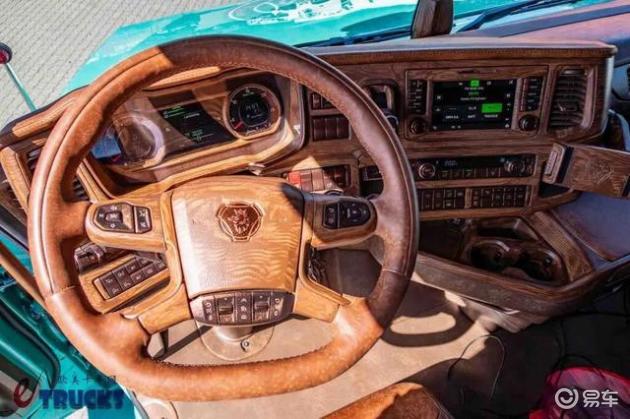 除了车身结构发生大幅变化外,这台斯堪尼亚T660长头卡车的内饰也经过了爆改。针对车主的使用习惯与审美偏好,内饰运用木纹、真皮等元素重新覆盖,整体风格更显成熟稳重。方向盘、仪表台等部位均进行了重新包覆,使车内体验更具豪华感。