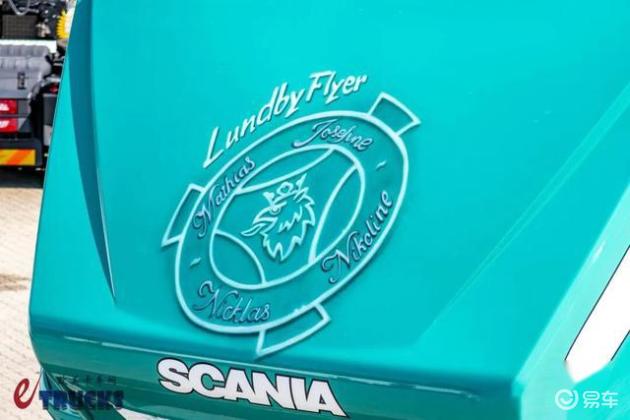 引擎盖顶端设计有定制标识,融合了斯堪尼亚经典标志和运营公司元素,旨在向经典传统致敬