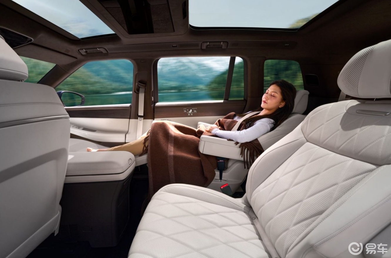 座椅方面,二排的动态零重力座椅是亮点,行车中也能用,而且带智能温控按摩功能,能自动调节烘干、除湿、暖风。前排和二排加热、通风、按摩、记忆都给齐了,连第三排也没落下——加热、电动调节、记忆功能都有,这个在竞品里确实不多见。前后排空调也做了柔风模式,避免直吹,带娃出门这一点挺实用。