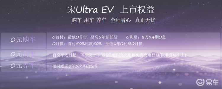 智能化方面,宋Ultra EV可选装天神之眼B-辅助驾驶激光版(DiPilot 300),搭载27个传感器,支持城市领航辅助、高快领航辅助及全场景智能泊车等功能。座舱内标配15.6英寸自适应旋转中控屏、10.25英寸液晶仪表、16扬声器迪声音响系统、50W无线快充等丰富配置。