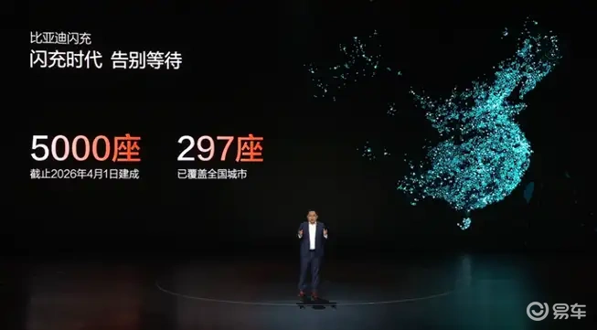 同时截止到4月1日,比亚迪闪充站已经建成5000座,覆盖297座城市,并且还要在五一假期前建成首批1000座高速闪充站,2026年底前建成20000座闪充站。