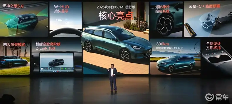 另一台海豹06DM-i旅行版,大家常说的瓦罐车,用的是第五代DM技术,CLTC纯电续航有200km和300km两个版本,亏电油耗3.15L/100km,30%到80%充电只需要20分钟,这是比亚迪品牌首款纯电续航做到300km的插混车型。