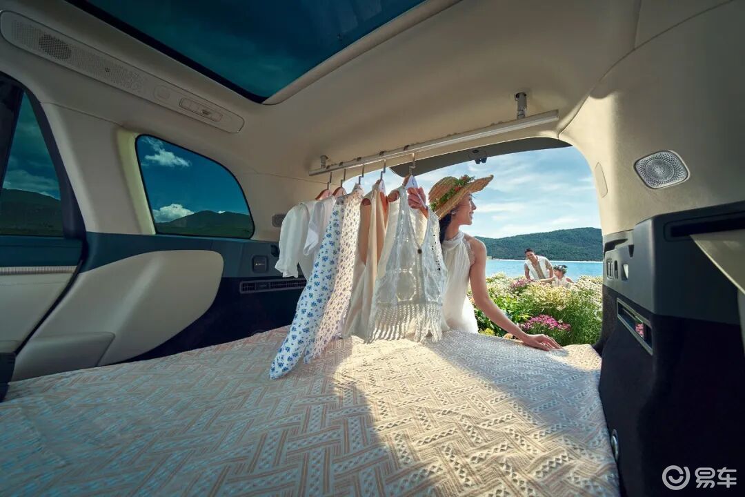 说到移动空间,就不得不提这台车另一个让人印象深刻的地方——它是怎么把5.2米的车身玩出花的。岚图泰山X8的尺寸是5200/2025/1814mm,轴距3090mm,这个体量放在8系里已经算是顶格了,带来的直接好处就是6.1平方米的座舱实得面积。但大只是一方面,关键是怎么用。它的后排座椅支持一键自动成床,不是那种需要你满头大汗手动放倒再铺床垫的半自动,而是真正的全自动,座椅自动下沉、靠背前折、床垫充气,一分钟之内一个2.1米的纯平大床就出现了。对于中午只能在车里眯一会儿的职场人,或者周末带家人露营的奶爸来说,这个功能的诱惑力实在太具体了。
