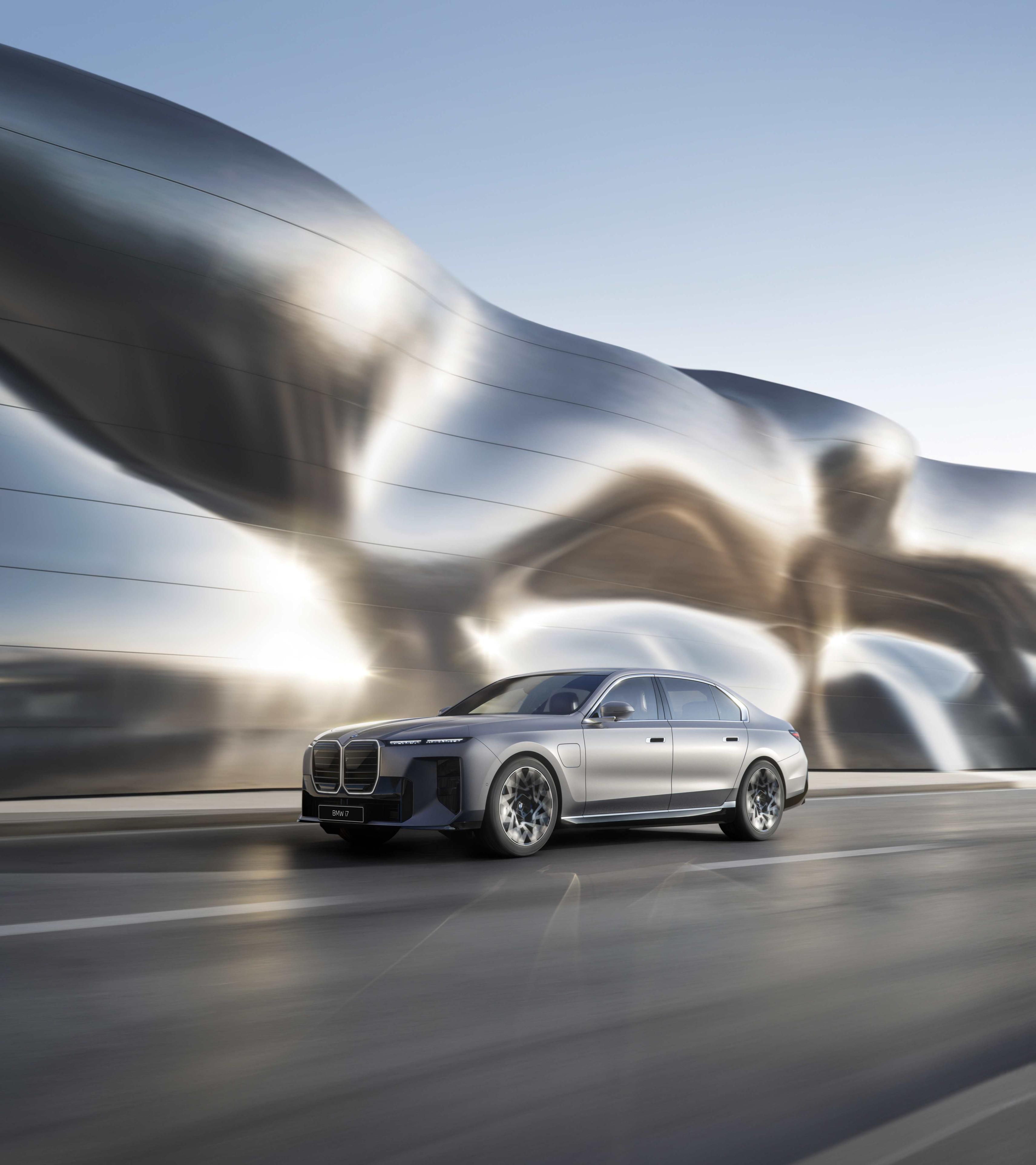 全新BMW 7系看起来非常稳重又自信,一眼就能看出它既有力量感又有权威感。这款车在大型豪华车的设计基础上,对整体结构和轮廓进行了优化:纵向挺拔,横向稳固,整体比例恰到好处,气场自然就出来了。更加垂直的双肾进气格栅让视觉中心更加集中;分体式大灯和进气区域自然融合,视觉上增强了车身的横向延展,整车看起来更加从容。全新水晶日间行车灯内有24颗水晶,可以单颗动态点亮,光影效果层次分明,给前脸增添了清晰灵动的神采。侧面和尾部延续了简洁而完整的设计,无论在什么环境、什么角度,车辆都显得鲜明而坚定。同级车中最丰富的个性化定制外观涂装,有500多种组合,让全新BMW 7系在不同文化背景下,展现出更具共鸣的审美。